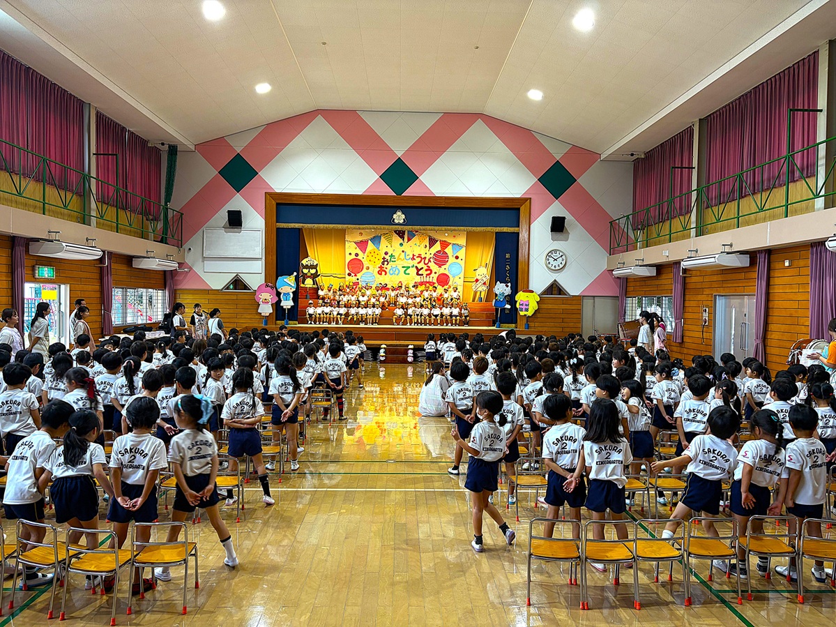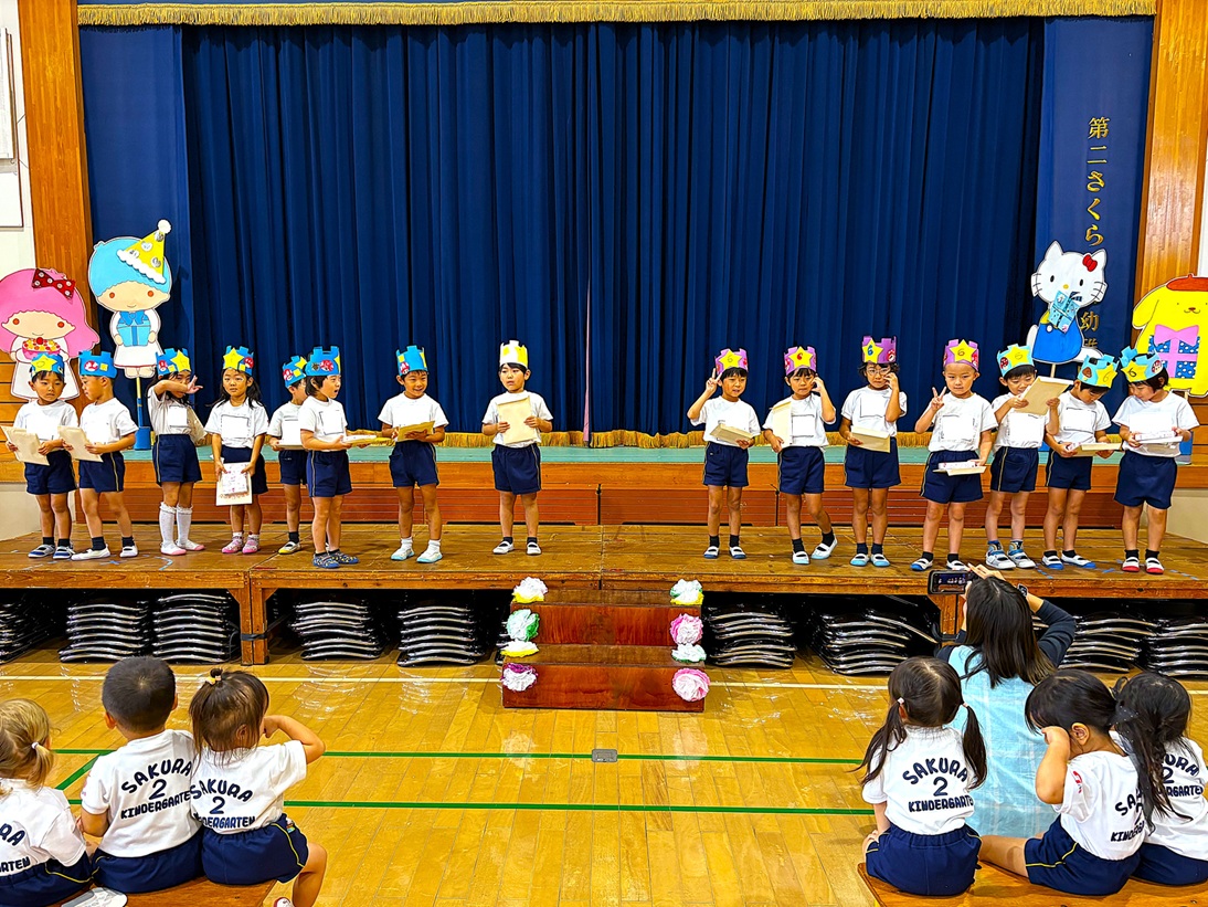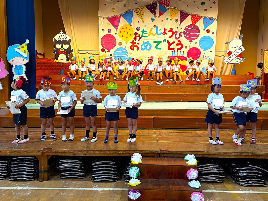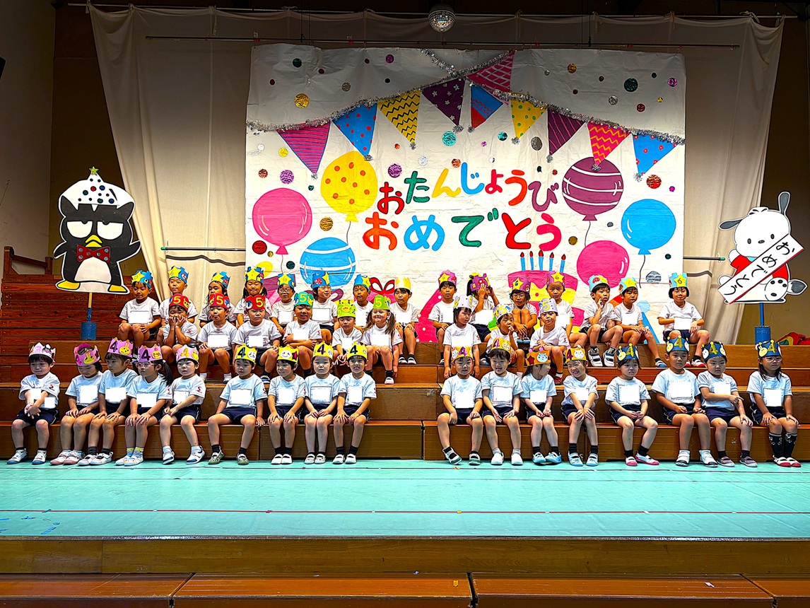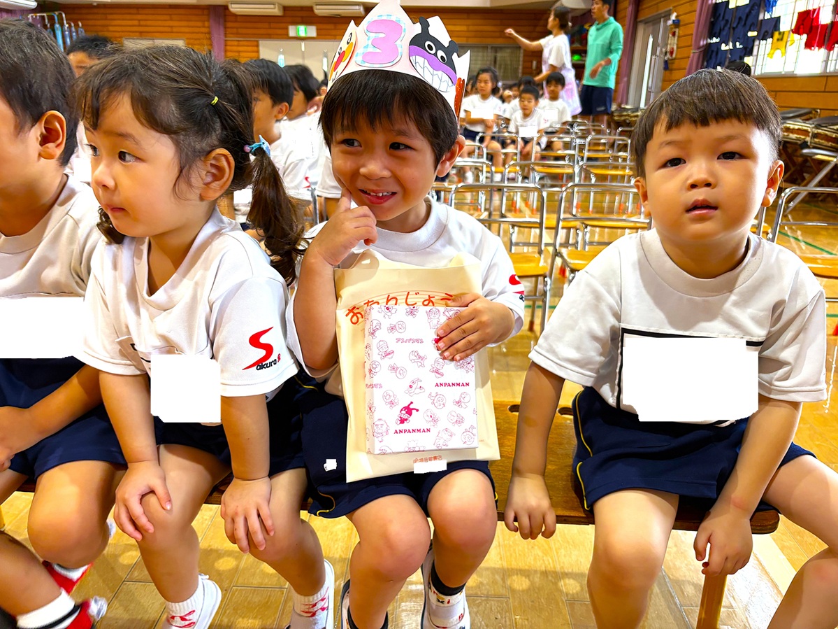 10月3日に10月生まれのお友だちの誕生会を行いました。 お友だちからの歌や、プレゼントを貰って喜ぶ可愛い笑顔が見られ、先生たちからの 出し物もあり、楽しい誕生会になりました(^^♪ 10月生まれのお友だち、誕生日おめでとう!! | ||