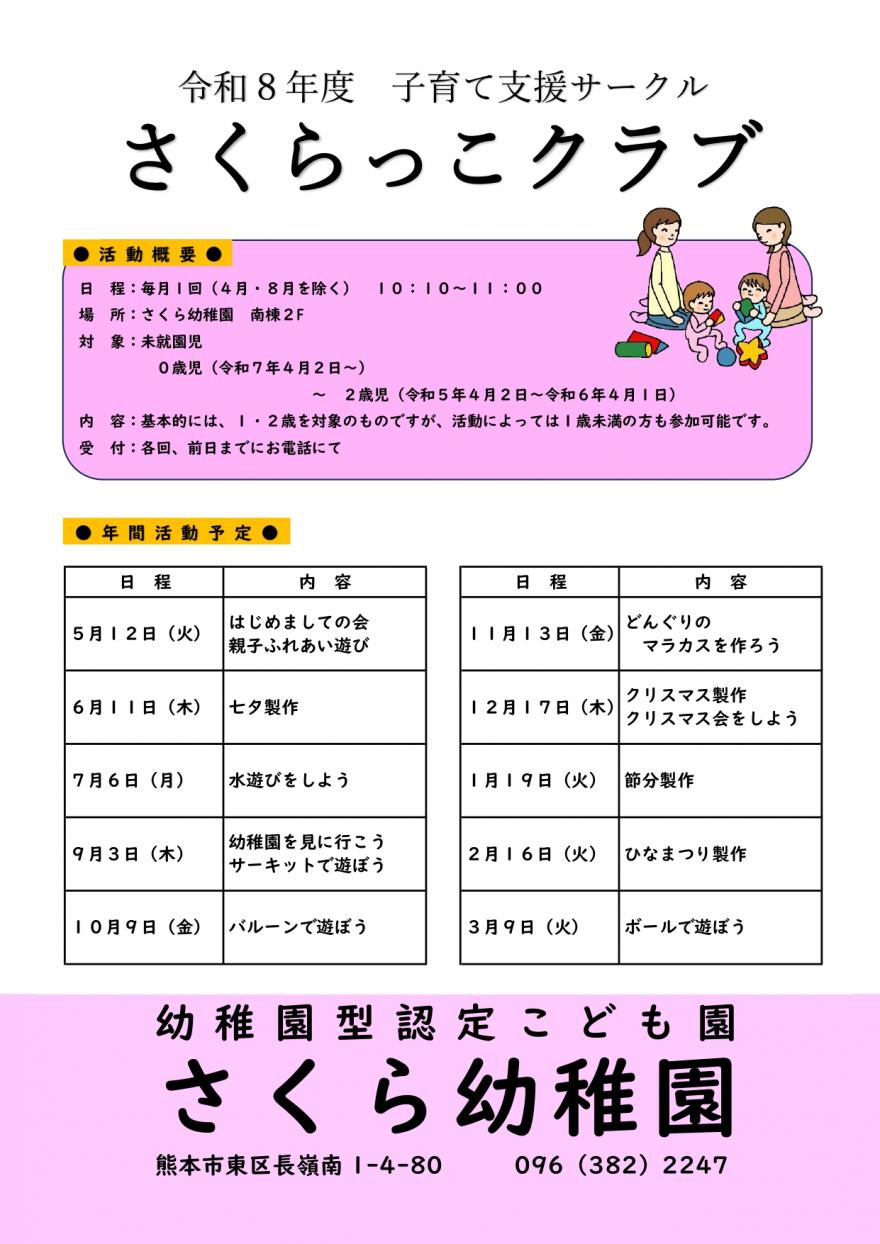 子育て支援サークル「さくらっこクラブ」の令和8年度活動が、5月からスタートします!